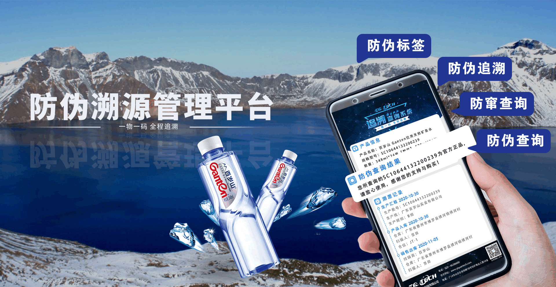 基于一物一码,实现产品从原料到生产、包装、仓储、物流、经销商、消费者全过程追溯,实现产品的全生命周期管理。