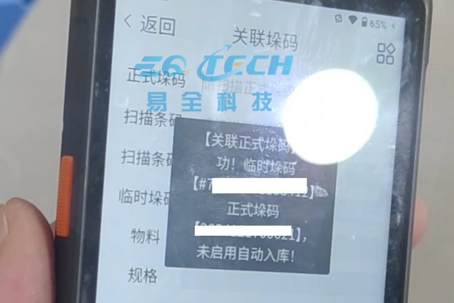 采集器自动采集箱码数据,建立码垛队列,如箱码无法采集,则报警并且自动剔除,PDA扫码建垛,一物一码溯源系统与其现有WMS系统对接,完成盒-箱-数据关联。